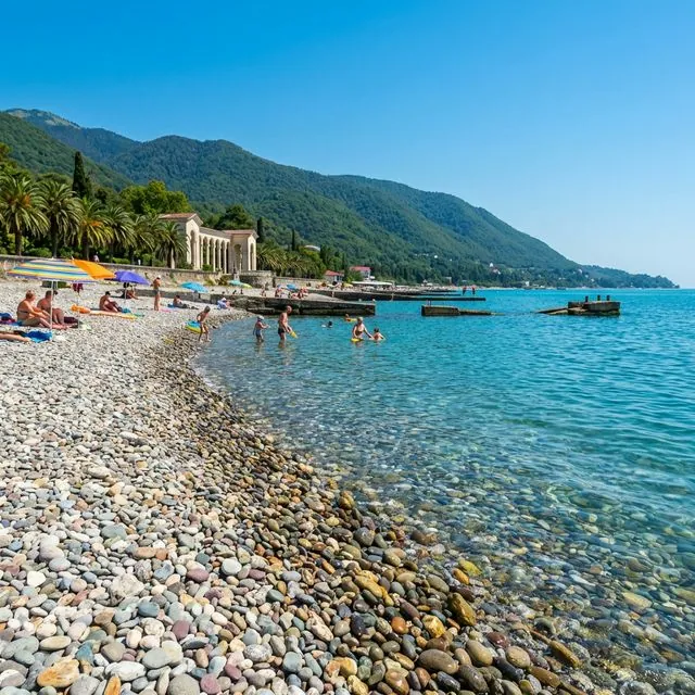 Пляжи Гагры — в основном галечные, с кристально чистой водой. Здесь можно купаться, заниматься дайвингом, кататься на катамаранах и отправляться в морские прогулки.
