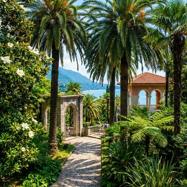 Приморский парк с пальмами, магнолиями и экзотическими растениями — отличный вариант для семейного отдыха.