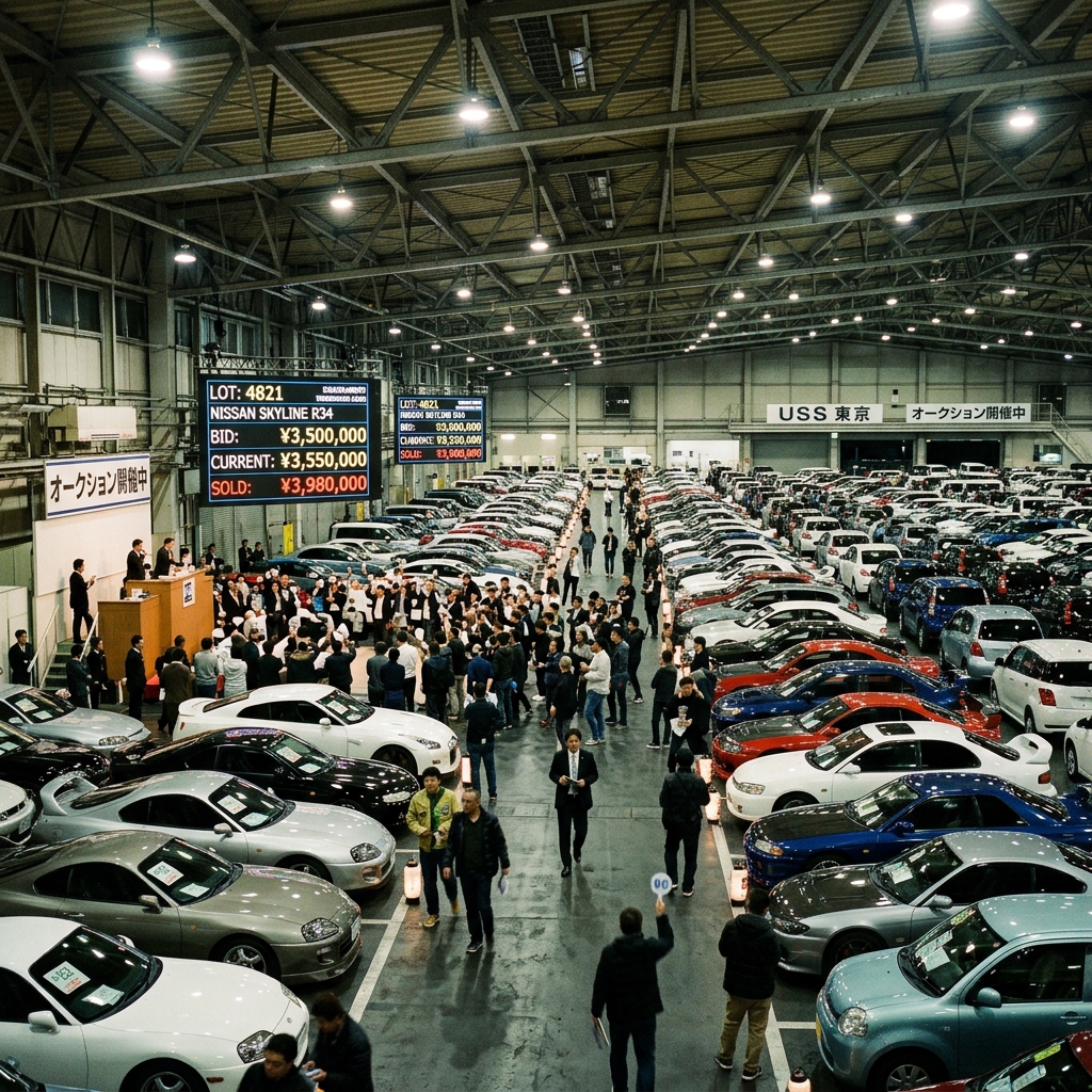 Японские автомобильные аукционы — это масштабные торговые площадки, через которые ежедневно проходят тысячи автомобилей. Главные из них: USS Tokyo, HAA Kobe, TAA, CAA и другие. Они работают по принципу закрытых торгов — покупатели делают ставки в реальном времени, и побеждает тот, кто предложил наибольшую цену.