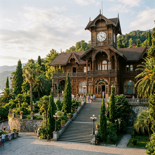Если у Старой Гагры есть сердце, то оно бьётся в ритме старинных механических часов на фасаде деревянного терема, утопающего в тропической зелени. Ресторан «Гагрипш» — это не просто заведение общепита, это главная архитектурная визитная карточка Абхазии, пережившая империи, войны и смену эпох.
