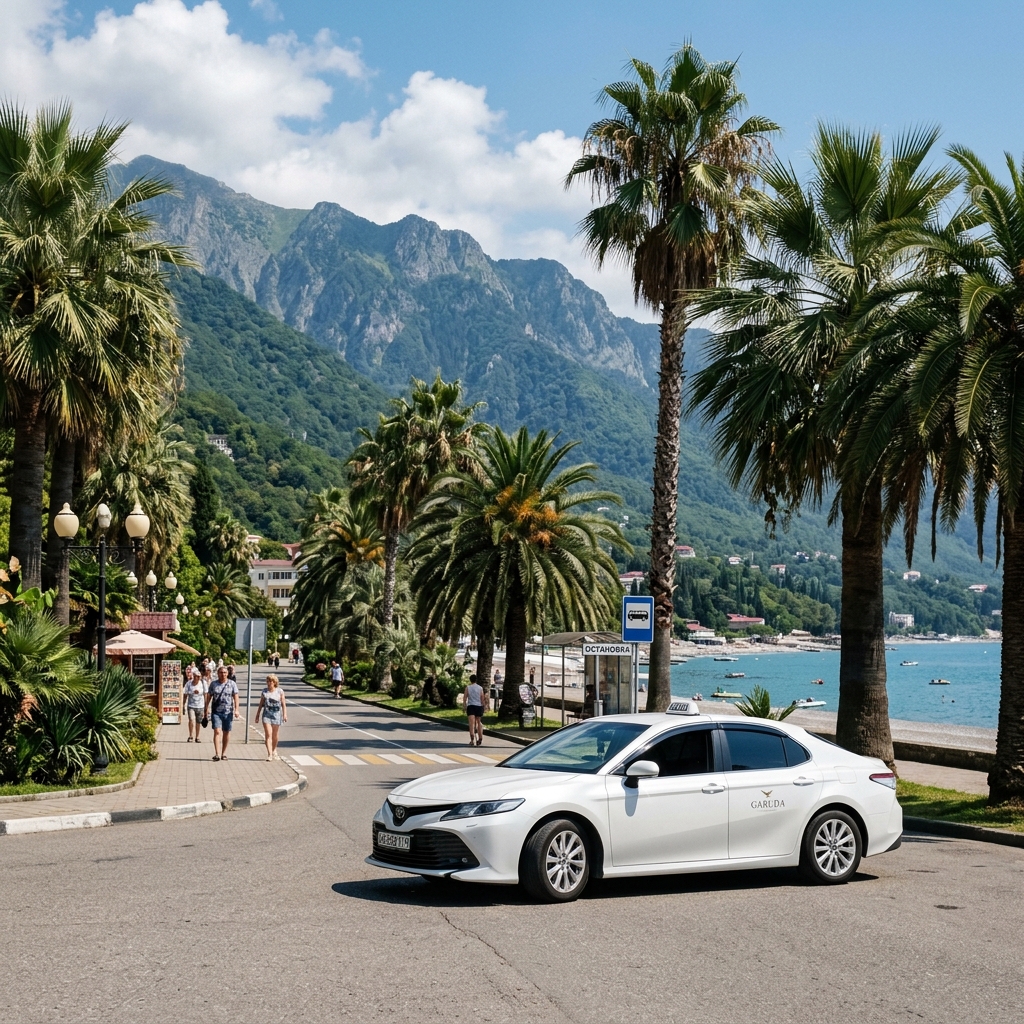 Выйдя с абхазского КПП, вас атакуют десятки нелегальных таксистов ("бомбил"), которые называют завышенные в 2 раза цены. Не садитесь к ним! Заранее, еще находясь в РФ, скачайте местные приложения вызова авто: "Гаруда Экспресс" (Garuda) или "А-Такси". В 2026 году у них работают отличные современные машины, детские кресла и честные тарифы по счетчику.