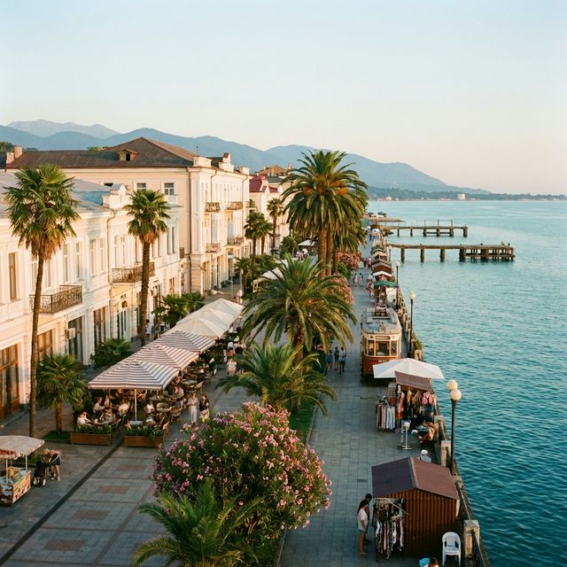 Набережная Махаджиров — то, ради чего в Сухум стоит приехать даже без определённого плана. Двухкилометровый бульвар тянется вдоль бухты, обсаженный финиковыми пальмами, эвкалиптами и олеандрами. По одну сторону — элегантные фасады XIX века (бывшие резиденции купцов и дипломатов), по другую — сверкающее море.