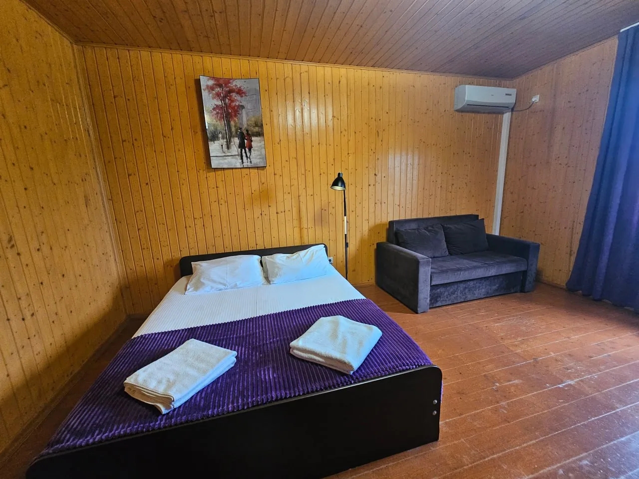 16 номеров категории "Комфорт", расположенные в деревянных эко-домиках на просторной зеленой закрытой территории вдали от суеты. Все номера у нас смежные, однокомнатные (18-20кв.м.), равнозначные по количеству спальных мест, с одинаковым качеством и временем ремонта и удобствами в номере ( душ, туалет). В каждом номере расположены: двуспальная кровать размером 160 см * 200 см, удобный для сна раскладной диван такого же размера, шкаф, тумба, торшер, мини-холодильник, кондиционер, телевизор. В номере комфортно разместятся от 1 до 4 чел, но при необходимости возможно расположиться и впятером. ...