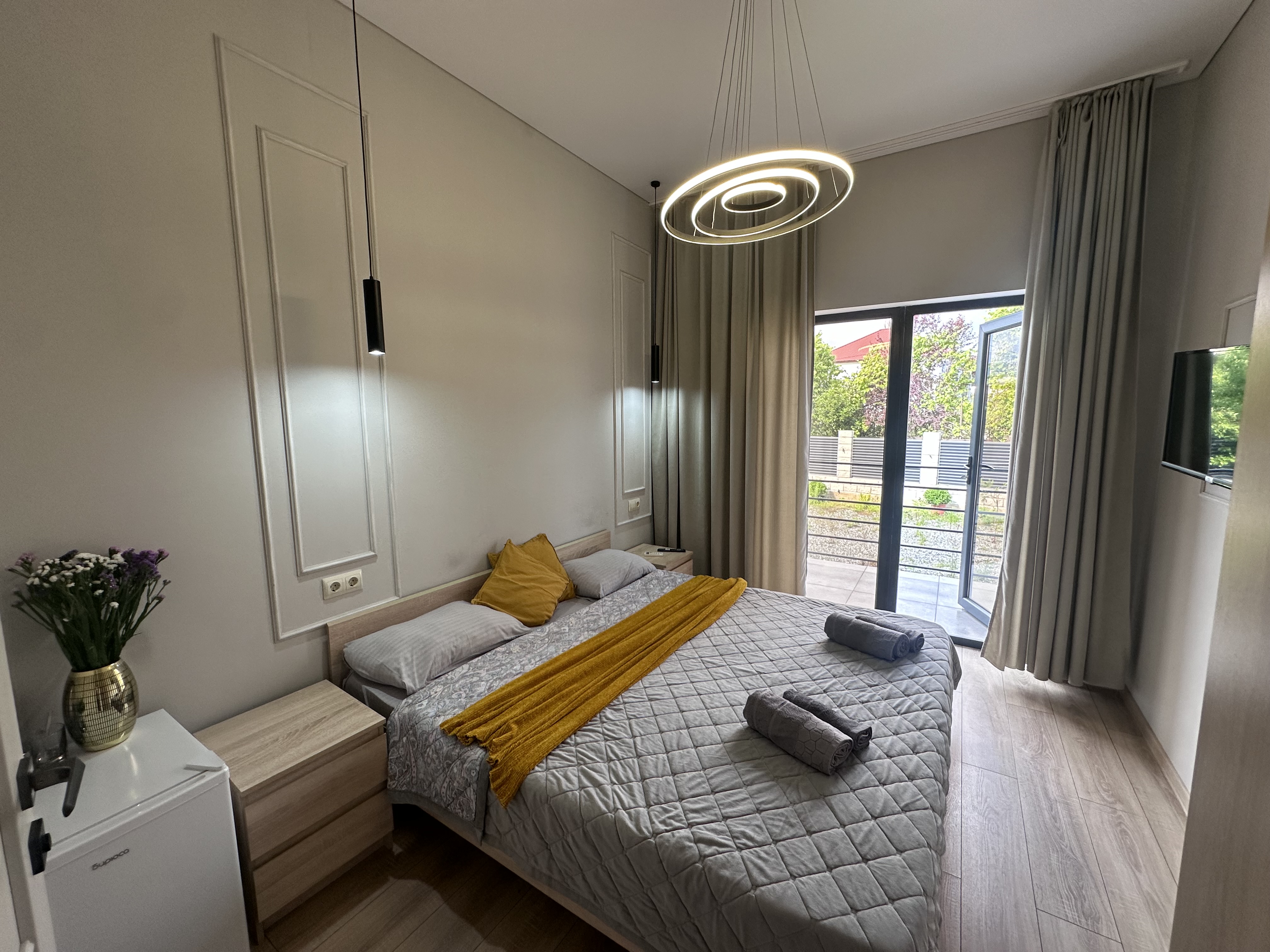 Мини -отель San , на 7 номеров , двухместные и трехместные . Кухня общая в летней беседке . Зона мангала … в каждом номера свой санузел. До моря 2 минуты пешком . Пляж центральный , (Галька и смесь песка и гальки ) оборудованный . До центрального рынка 5 мин пешком .