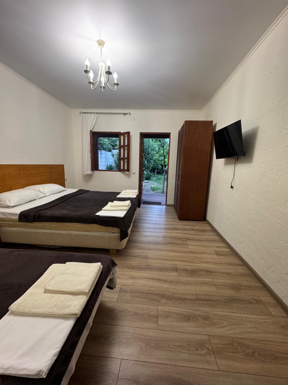 Сдаётся отдельный дом из трёх спален (в каждой имеется санузел), дом расположен в саду, имеется кухня, беседка и мангал. В летнее время устанавливаем бассейн для детей до 5 лет.